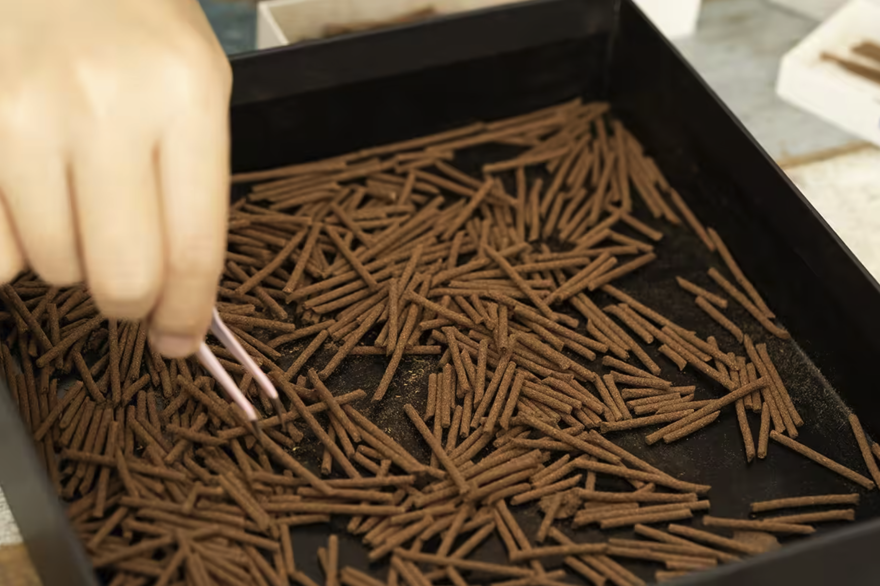 我們靜下心來思考後,覺得這些香氣如此純粹,就這樣丟棄實在太浪費。於是,我們秉持著愛物惜物的精神,請咱家夫人們一支一支用心整理,將這些斷裂但香氣完整的短香,精心收納進特製的鐵盒裡,決定以最真誠的方式推出這次特別的「一寸餘香」惜物回饋組。